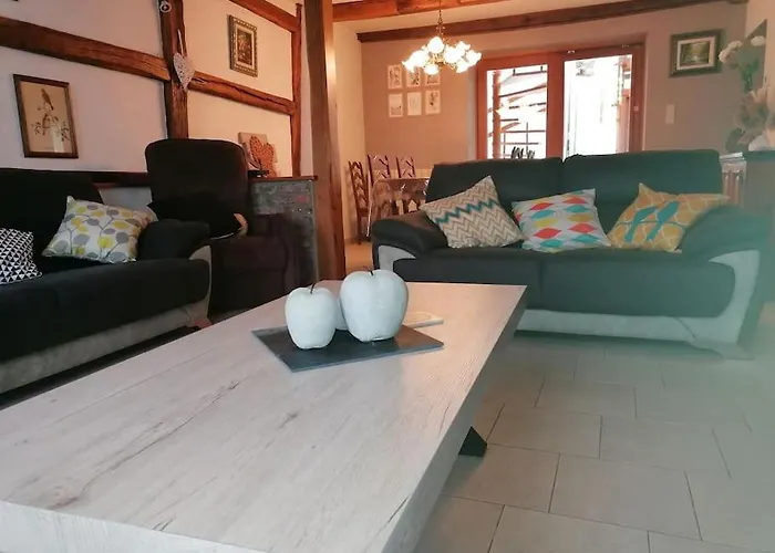 Au Petit Ry Treignes שוכנת תוך 2.1 ק"מ על Mausolée de Vierves וכוללת דק שמש ומרפסת שיזוף. מטבח מאובזר וכמו כן גם ציוד להכנת קפה או תה, שולחן כתיבה וטלוויזיה סטנדרטיים בחדרי וילה זו.